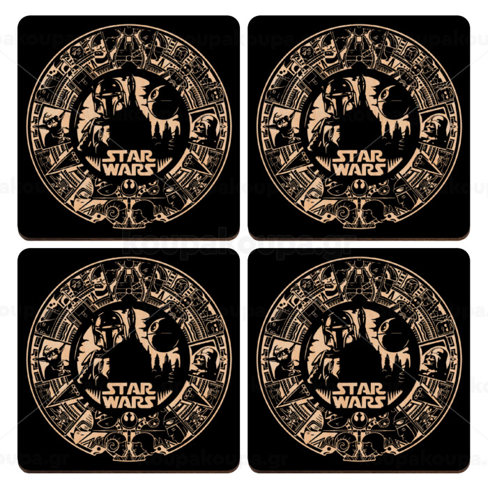 Star Wars Disk, ΣΕΤ x4 Σουβέρ ξύλινα τετράγωνα plywood (9cm)