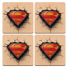 Superman cracked, ΣΕΤ x4 Σουβέρ ξύλινα τετράγωνα plywood (9cm)