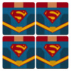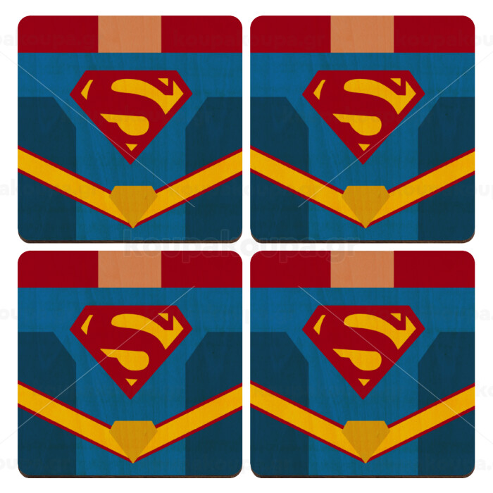 Superman flat, ΣΕΤ x4 Σουβέρ ξύλινα τετράγωνα plywood (9cm)