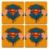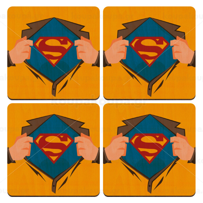 Superman hands, ΣΕΤ x4 Σουβέρ ξύλινα τετράγωνα plywood (9cm)