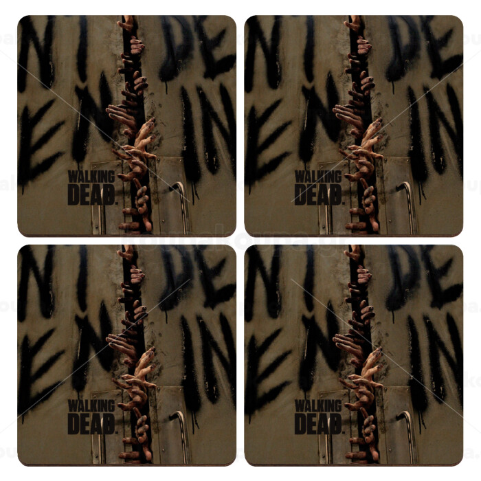 The walking dead hands, ΣΕΤ x4 Σουβέρ ξύλινα τετράγωνα plywood (9cm)