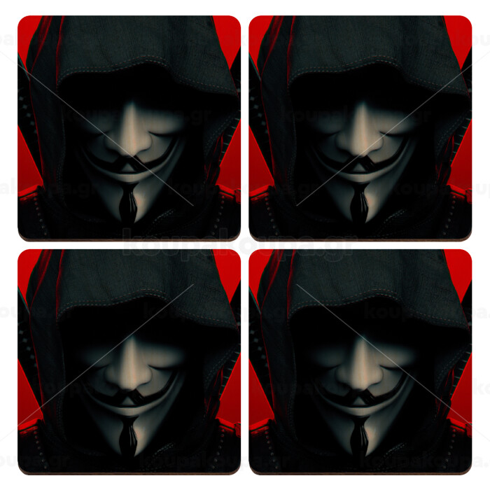 V for Vendetta, ΣΕΤ x4 Σουβέρ ξύλινα τετράγωνα plywood (9cm)