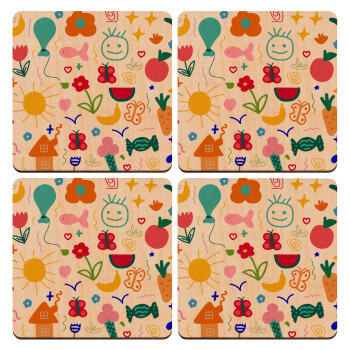 Παιδική φαντασία, ΣΕΤ x4 Σουβέρ ξύλινα τετράγωνα plywood (9cm)