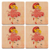 Candy, ΣΕΤ x4 Σουβέρ ξύλινα τετράγωνα plywood (9cm)