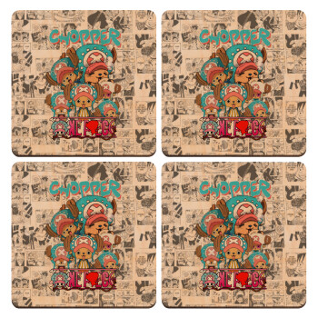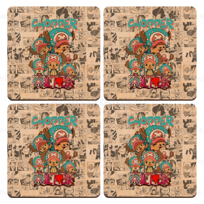 Chopper One Piece, ΣΕΤ x4 Σουβέρ ξύλινα τετράγωνα plywood (9cm)