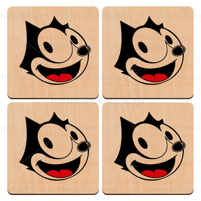 Felix the cat, ΣΕΤ x4 Σουβέρ ξύλινα τετράγωνα plywood (9cm)
