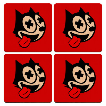helix the cat, ΣΕΤ x4 Σουβέρ ξύλινα τετράγωνα plywood (9cm)