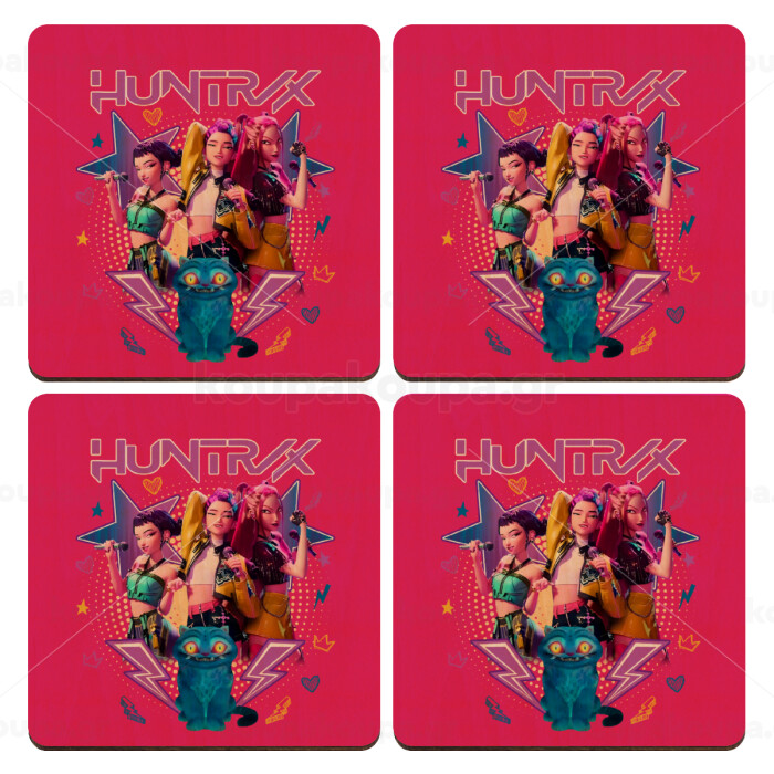 Huntrix K-pop series, ΣΕΤ x4 Σουβέρ ξύλινα τετράγωνα plywood (9cm)