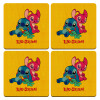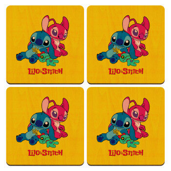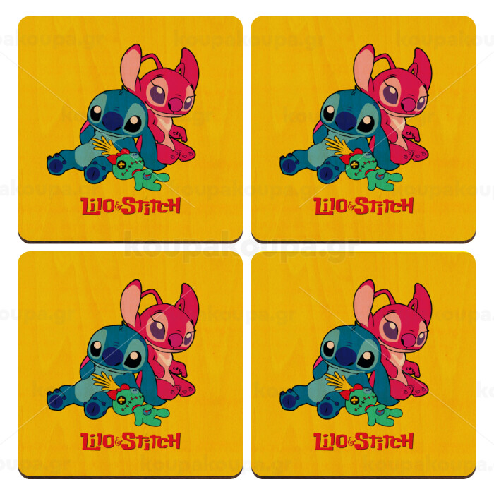 Lilo & Stitch, ΣΕΤ x4 Σουβέρ ξύλινα τετράγωνα plywood (9cm)
