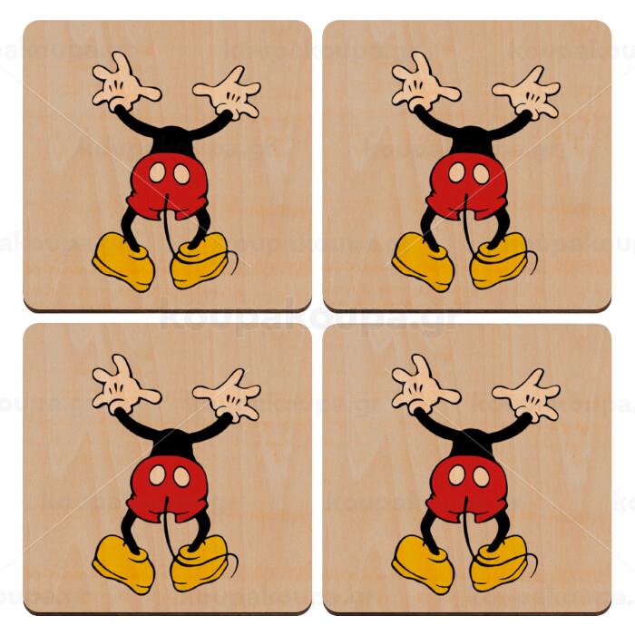 Mickey hide..., ΣΕΤ x4 Σουβέρ ξύλινα τετράγωνα plywood (9cm)