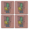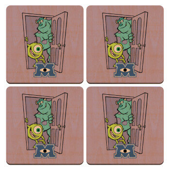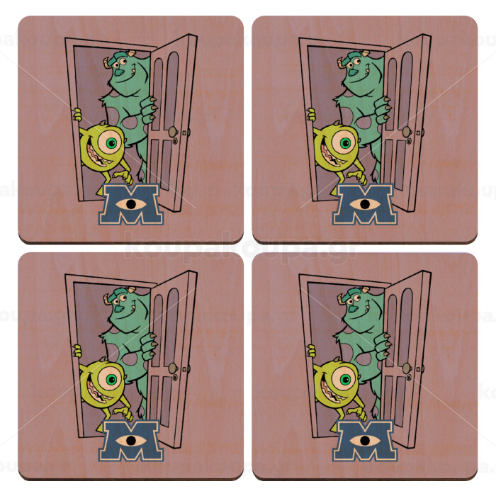 Monster inc, ΣΕΤ x4 Σουβέρ ξύλινα τετράγωνα plywood (9cm)
