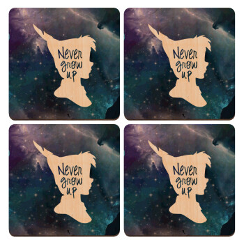 Never Grow UP, ΣΕΤ x4 Σουβέρ ξύλινα τετράγωνα plywood (9cm)