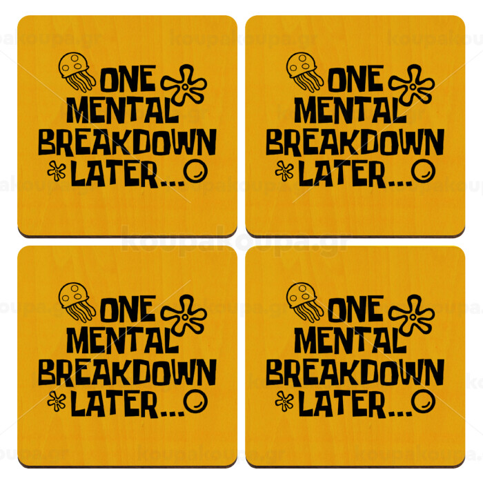 one mental breakdown later bob spongebob, ΣΕΤ x4 Σουβέρ ξύλινα τετράγωνα plywood (9cm)