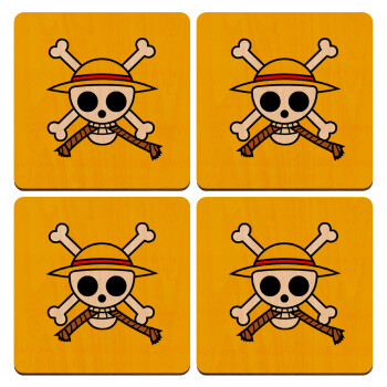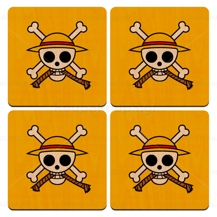 Onepiece skull, ΣΕΤ x4 Σουβέρ ξύλινα τετράγωνα plywood (9cm)