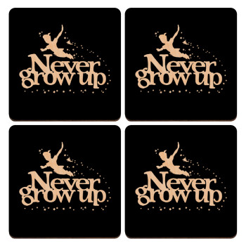 Peter pan, Never Grow UP, ΣΕΤ x4 Σουβέρ ξύλινα τετράγωνα plywood (9cm)
