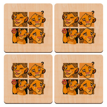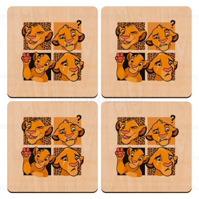 Simba, lion king, ΣΕΤ x4 Σουβέρ ξύλινα τετράγωνα plywood (9cm)