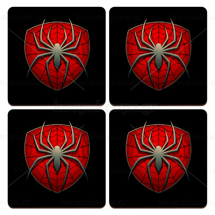 Spider-man, ΣΕΤ x4 Σουβέρ ξύλινα τετράγωνα plywood (9cm)