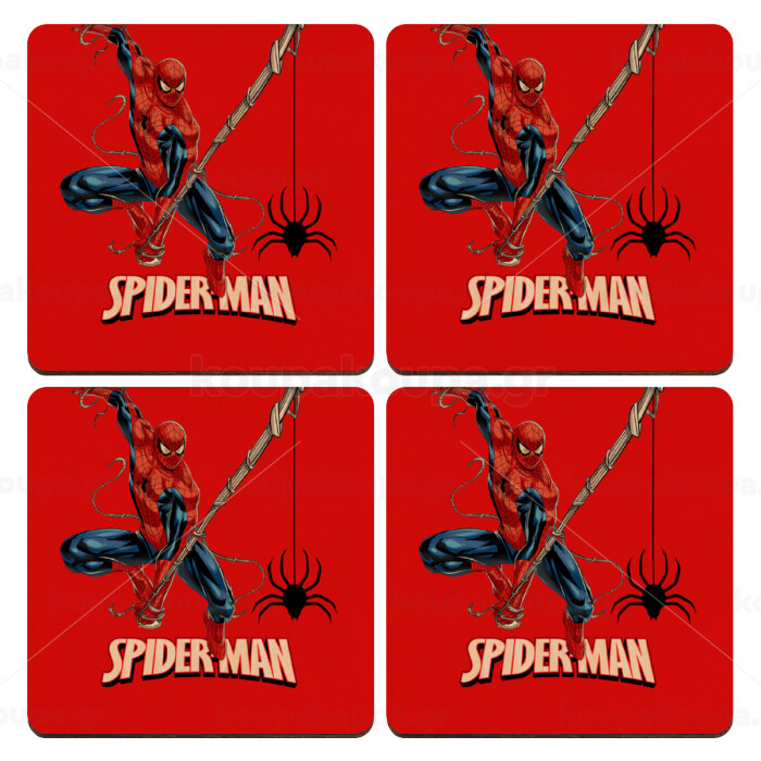 Spiderman fly, ΣΕΤ x4 Σουβέρ ξύλινα τετράγωνα plywood (9cm)