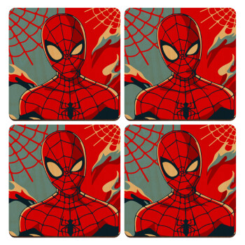 Spiderman kid, ΣΕΤ x4 Σουβέρ ξύλινα τετράγωνα plywood (9cm)