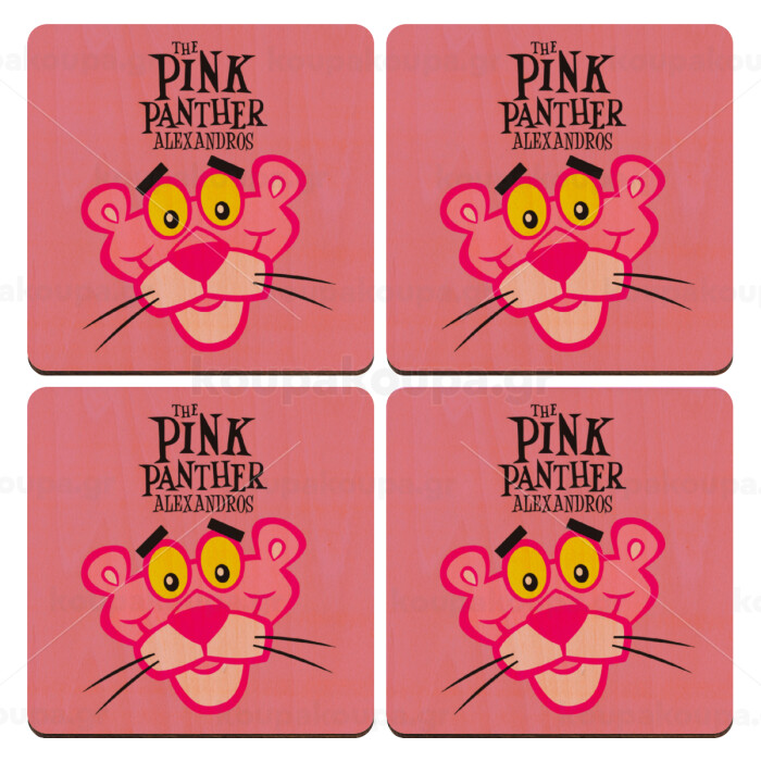The pink panther, ΣΕΤ x4 Σουβέρ ξύλινα τετράγωνα plywood (9cm)