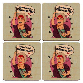 Αντε καλέ, σιγά, κόβεται το σέξ ;, ΣΕΤ x4 Σουβέρ ξύλινα τετράγωνα plywood (9cm)