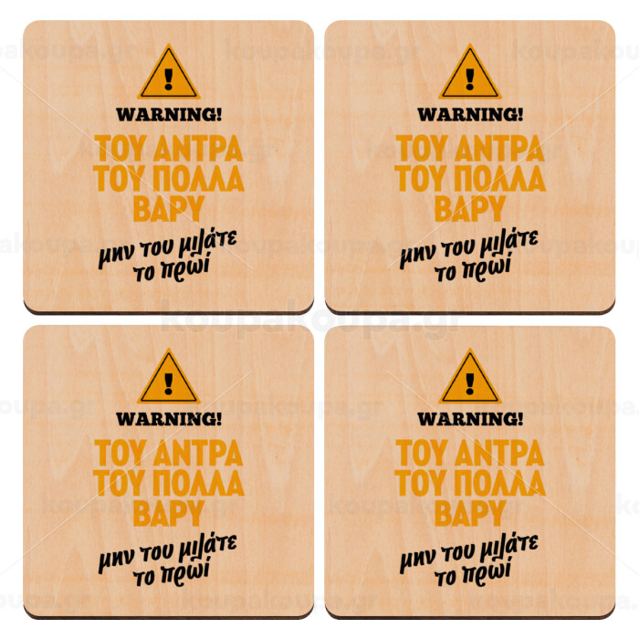 Του άντρα του πολλά βαρύ, ΣΕΤ x4 Σουβέρ ξύλινα τετράγωνα plywood (9cm)