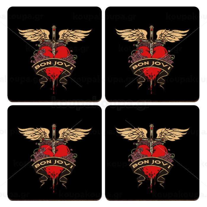 Bon Jovi, ΣΕΤ x4 Σουβέρ ξύλινα τετράγωνα plywood (9cm)