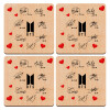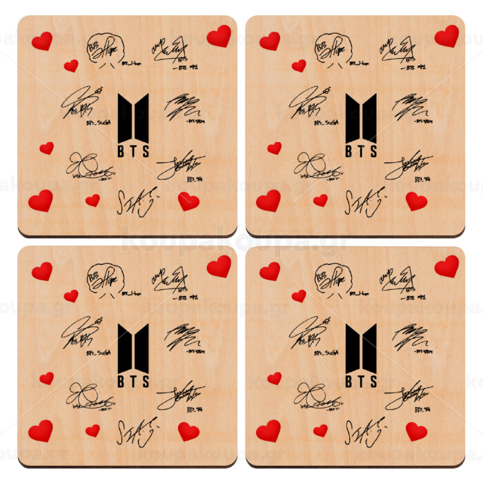 BTS signatures, ΣΕΤ x4 Σουβέρ ξύλινα τετράγωνα plywood (9cm)