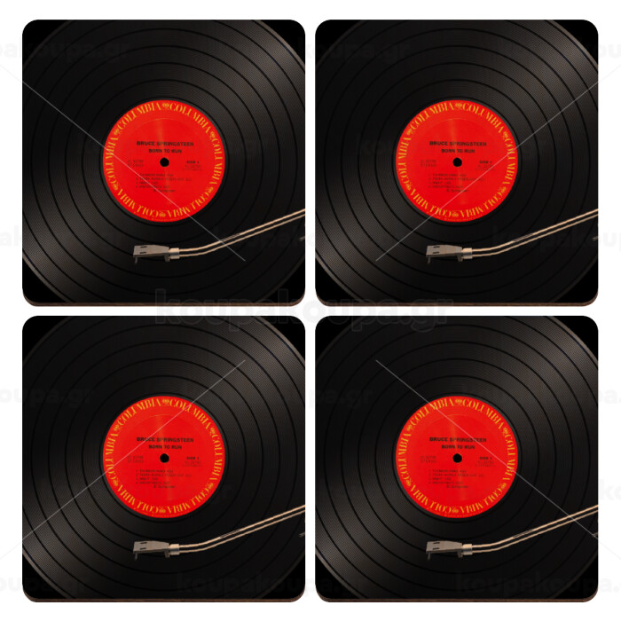 Columbia records bruce springsteen, ΣΕΤ x4 Σουβέρ ξύλινα τετράγωνα plywood (9cm)