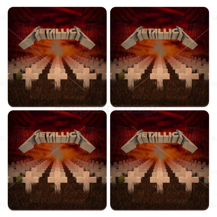 Metallica master of puppets cover, ΣΕΤ x4 Σουβέρ ξύλινα τετράγωνα plywood (9cm)