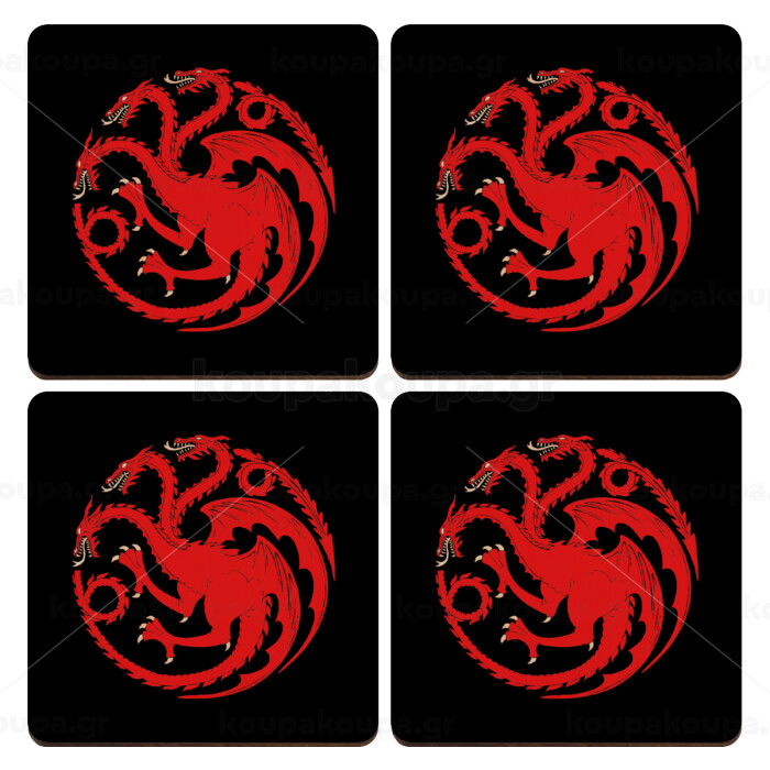 GOT House Targaryen, Fire Blood, ΣΕΤ x4 Σουβέρ ξύλινα τετράγωνα plywood (9cm)