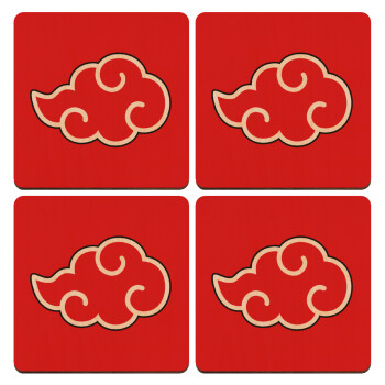Naruto Akatsuki Cloud, ΣΕΤ x4 Σουβέρ ξύλινα τετράγωνα plywood (9cm)