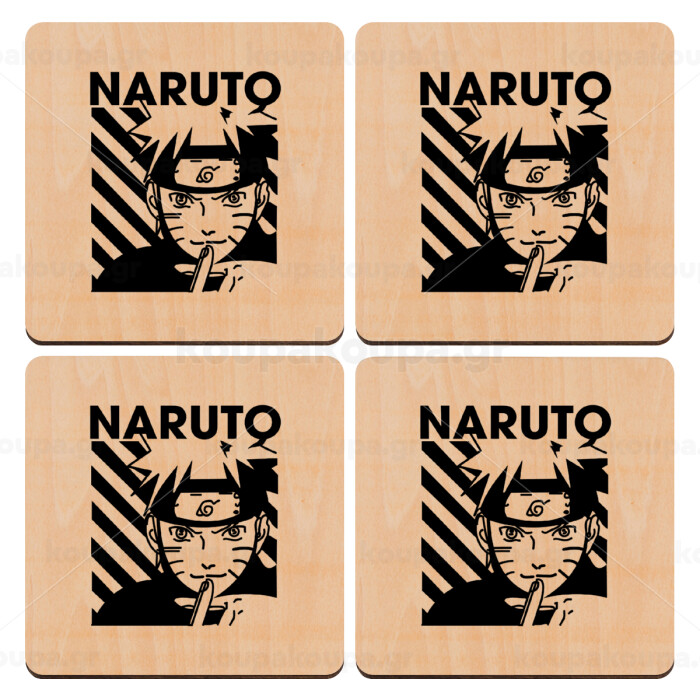 Naruto uzumaki, ΣΕΤ x4 Σουβέρ ξύλινα τετράγωνα plywood (9cm)