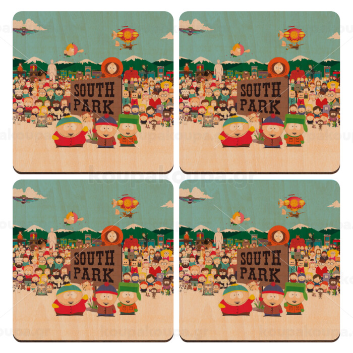 South Park, ΣΕΤ x4 Σουβέρ ξύλινα τετράγωνα plywood (9cm)