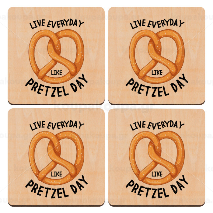 The office, Live every day like pretzel day, ΣΕΤ x4 Σουβέρ ξύλινα τετράγωνα plywood (9cm)