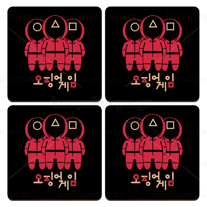 The squid game, ΣΕΤ x4 Σουβέρ ξύλινα τετράγωνα plywood (9cm)