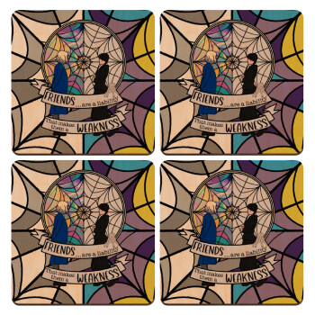Wednesday window, ΣΕΤ x4 Σουβέρ ξύλινα τετράγωνα plywood (9cm)