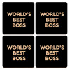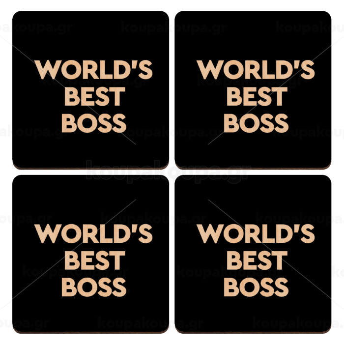 World's best boss, ΣΕΤ x4 Σουβέρ ξύλινα τετράγωνα plywood (9cm)