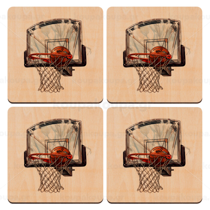 Basketball, ΣΕΤ x4 Σουβέρ ξύλινα τετράγωνα plywood (9cm)