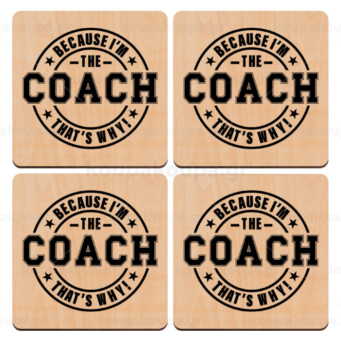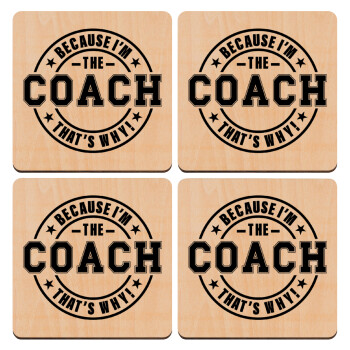 Because i'm the Coach, ΣΕΤ x4 Σουβέρ ξύλινα τετράγωνα plywood (9cm)
