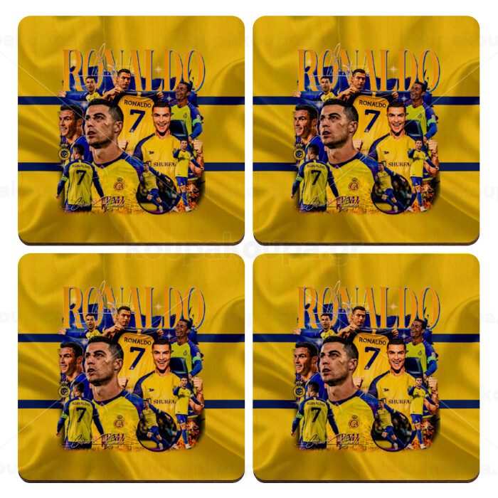 Cristiano Ronaldo Al Nassr, ΣΕΤ x4 Σουβέρ ξύλινα τετράγωνα plywood (9cm)
