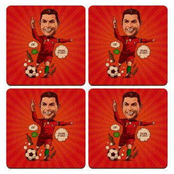 Cristiano Ronaldo, ΣΕΤ x4 Σουβέρ ξύλινα τετράγωνα plywood (9cm)