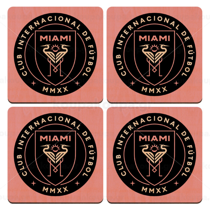 Inter Miami CF, ΣΕΤ x4 Σουβέρ ξύλινα τετράγωνα plywood (9cm)