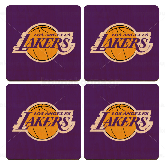 Lakers, ΣΕΤ x4 Σουβέρ ξύλινα τετράγωνα plywood (9cm)
