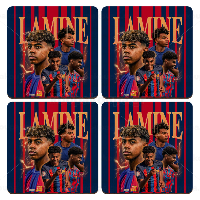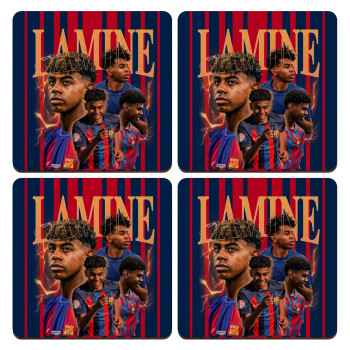 lamine yamal FCB, ΣΕΤ x4 Σουβέρ ξύλινα τετράγωνα plywood (9cm)