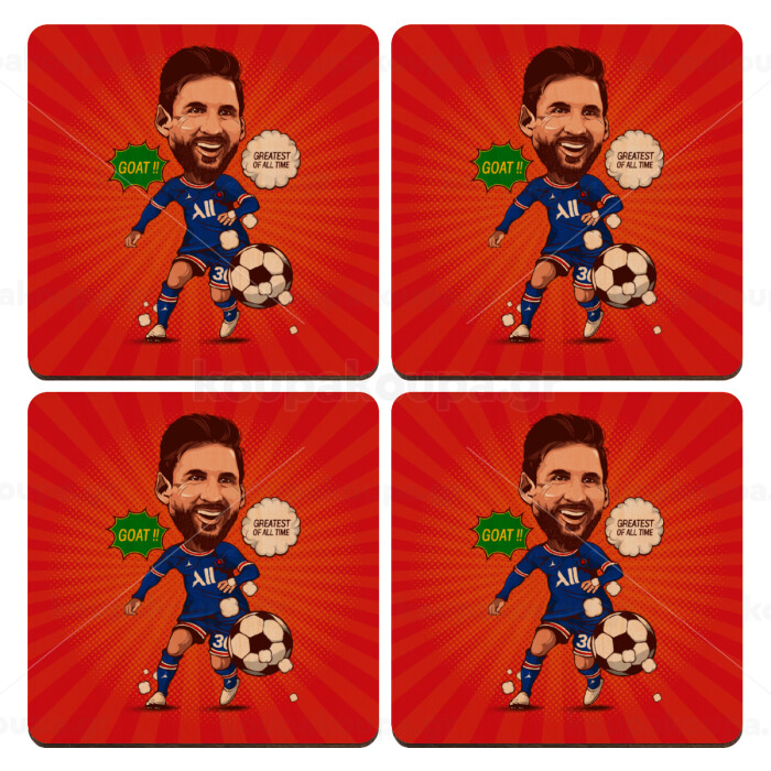 Lionel Messi drawing, ΣΕΤ x4 Σουβέρ ξύλινα τετράγωνα plywood (9cm)