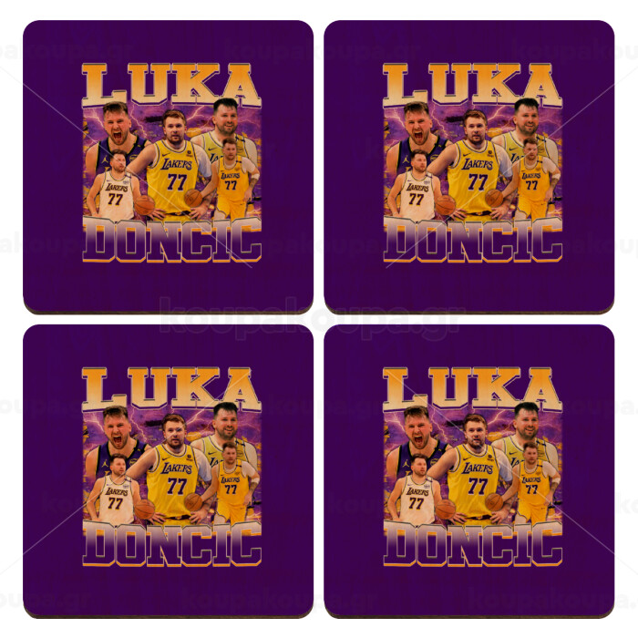 Luka Doncic Basketball , ΣΕΤ x4 Σουβέρ ξύλινα τετράγωνα plywood (9cm)