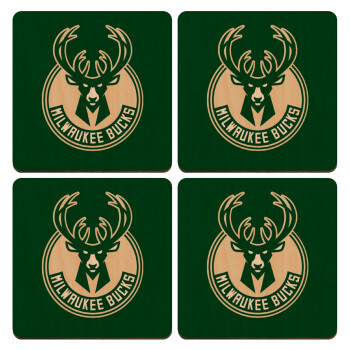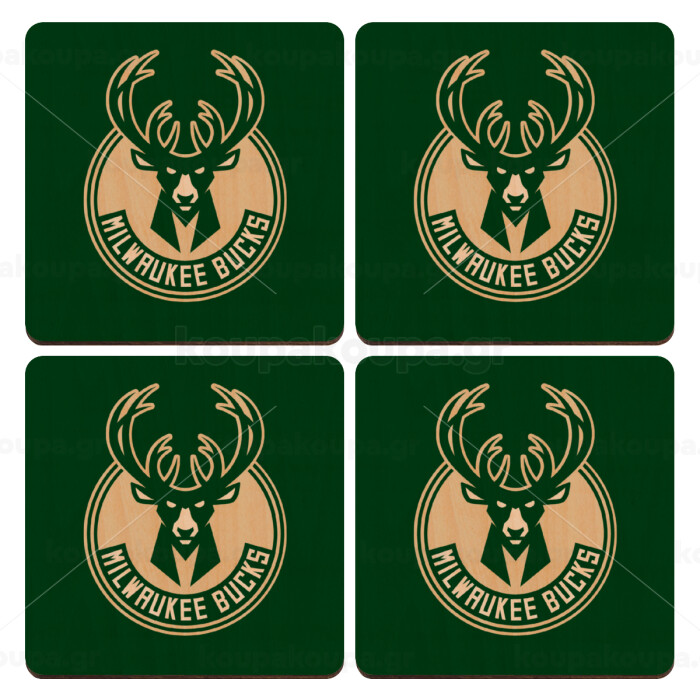 Milwaukee bucks, ΣΕΤ x4 Σουβέρ ξύλινα τετράγωνα plywood (9cm)