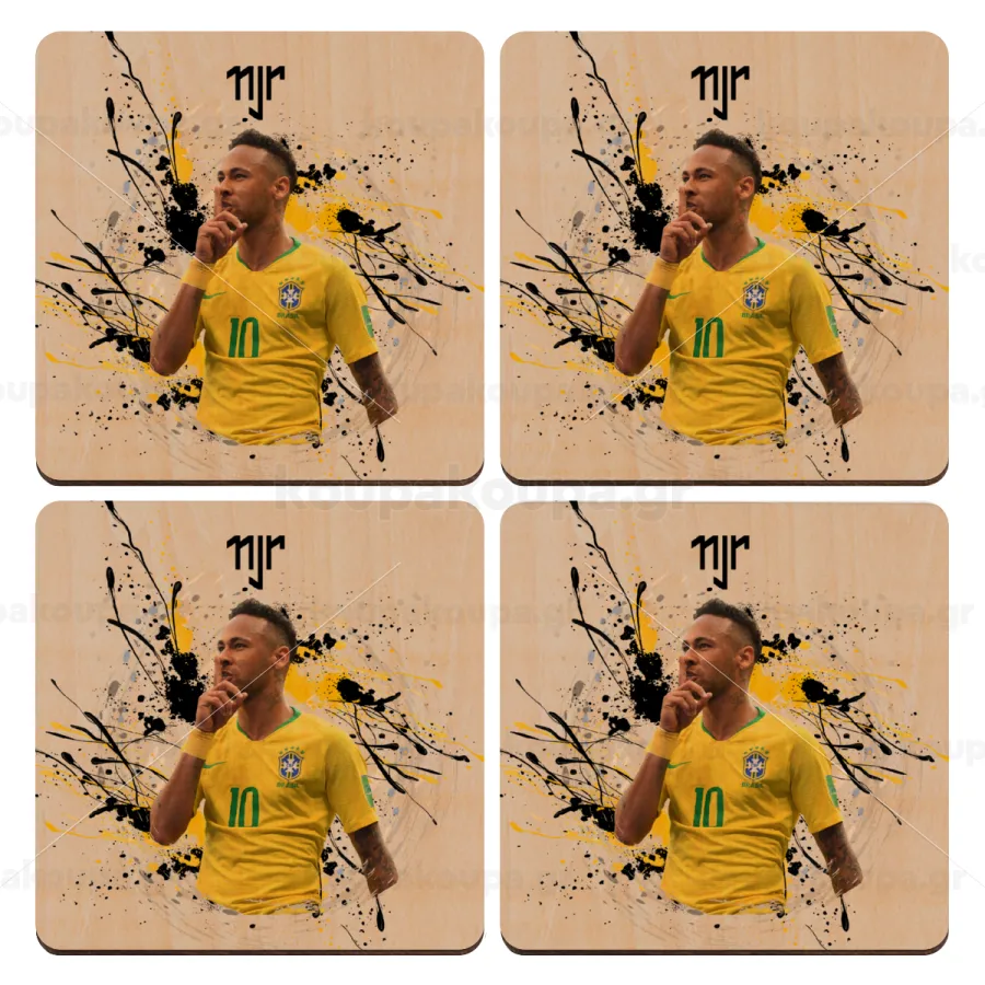 Neymar JR, ΣΕΤ x4 Σουβέρ ξύλινα τετράγωνα plywood (9cm)