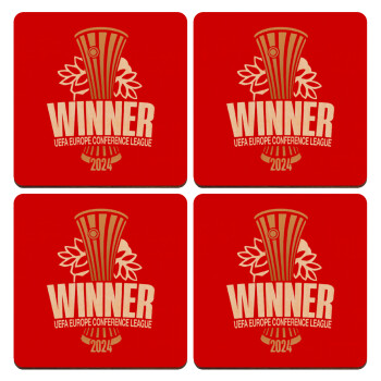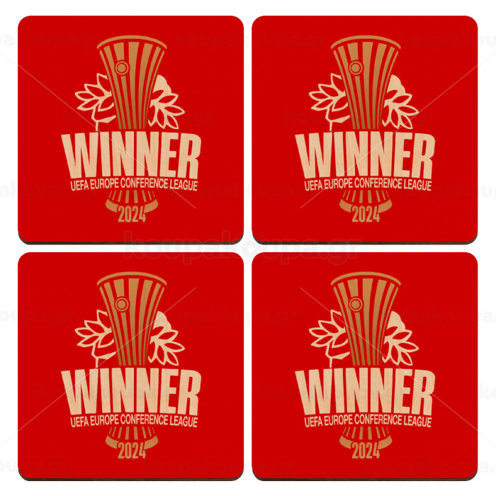 Europa Conference League WINNER, ΣΕΤ x4 Σουβέρ ξύλινα τετράγωνα plywood (9cm)